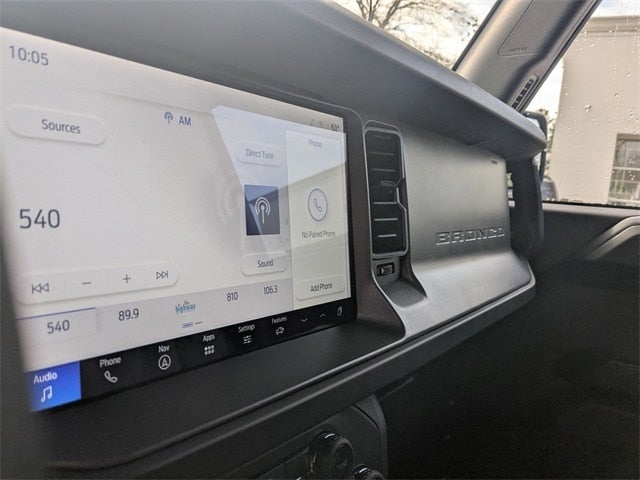 Equipment Group 332A Mid Package (2-Door Intelligent Access w/Lock/Unlock, Ambient Footwell Lighting, Connected Navigation, Dr & Pass Illuminated Sliding Visor Vanity Mirrors, Dual Smart Charging USB Ports, Dual-Zone Electronic Automatic Temperature Control, Front Row Heated Seats, Power Outlet - Back Side of Center Floor Console, and Rear Parking Sensors), Sasquatch Package (High Clearance Fender Flares, High Clearance Suspension, Position-Sensitive Bilstein Shock Absorbers, and Wheels: 17 Carbonized Gray Painted Aluminum), 4-Wheel Disc Brakes, 7 Speakers, ABS brakes, Air Conditioning, Alloy wheels, AM/FM radio: SiriusXM with 360L, AM/FM Stereo, Auto High-Beam Headlamps, Auto High-beam Headlights, Auto-dimming Rear-View mirror, BLIS Blind Spot Information System, Brake assist, Carbonized Gray Molded-In-Color Hard Top, Compass, Delay-off headlights, Door Storage Bags, Driver door bin, Driver vanity mirror, Dual front impact airbags, Dual front side impact airbags, Electronic Stability Control, Emergency communication system: 911 Assist, Exterior Parking Camera Rear, Ford Performance Heavy-Duty Modular Front Bumper, Front anti-roll bar, Front Bucket Seats, Front Center Armrest, Front fog lights, Front reading lights, Front wheel independent suspension, Fully automatic headlights, Heated door mirrors, Heated front seats, Heated steering wheel, Illuminated entry, Integrated roll-over protection, Internet access capable: FordPass Connect, Lane-Keeping System, Leather Shift Knob, Low tire pressure warning, Marine Grade Vinyl Heated Bucket Seats, Occupant sensing airbag, Outside temperature display, Overhead airbag, Overhead console, Panic alarm, Passenger door bin, Passenger vanity mirror, Power door mirrors, Power steering, Power windows, Pre-Collision Assist w/Automatic Emergency Braking, Radio data system, Rear-View Camera, Rear-Window Defroster & Washer, Remote keyless entry, Security system, SiriusXM w/360L, Speed control, Split folding rear seat, Steering wheel mounted audio controls, SYNC 4, Tachometer, Telescoping steering wheel, Tilt steering wheel, Traction control, Trip computer, Variably intermittent wipers, Voltmeter, Wheels: 17 Black High Gloss-Painted Aluminum (64X), and Wheels: 17 Carbonized Gray-Painted Aluminum. Price includes: $2500 - Retail Customer Cash. Exp. 03/31/2026