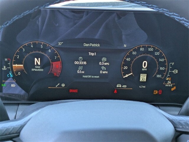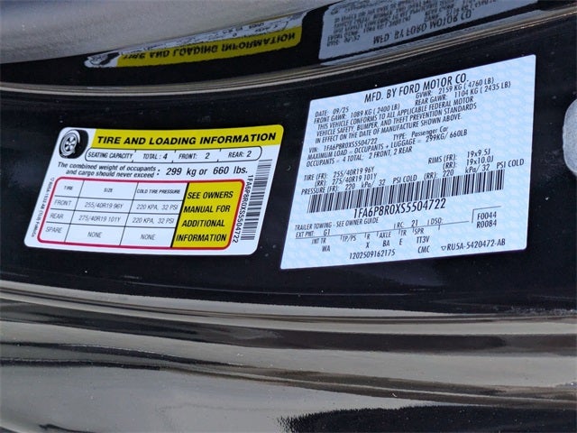 Equipment Group 700A Deluxe Package (Aluminum Foot Pedals, Approach Detection, Cloth/Vinyl Climate-Controlled Bucket Seats, Driver Seat & Mirrors Memory, and Universal Garage Door Opener (UGDO)), RECARO Sport Seats (RECARO Micro-Suede/Vinyl Bucket Seats), Security Package (Active Anti-Theft System, Locking Center Console, and Wheel Locking Kit), 12 Speakers, 4-Wheel Disc Brakes, ABS brakes, Adaptive suspension, Air Conditioning, Alloy wheels, AM/FM radio: SiriusXM with 360L, AM/FM Stereo, Auto High-beam Headlights, Auto-dimming Rear-View mirror, Automatic temperature control, B&O Sound System by Bang & Olufsen, Brake assist, Bumpers: body-color, Cloth/Vinyl Heated Bucket Seats, Compass, Delay-off headlights, Driver door bin, Driver vanity mirror, Dual front impact airbags, Dual front side impact airbags, Electronic Stability Control, Emergency communication system: 911 Assist, Exterior Parking Camera Rear, Four wheel independent suspension, Front anti-roll bar, Front Bucket Seats, Front Center Armrest, Front dual zone A/C, Front reading lights, Fully automatic headlights, HD Radio, Heated front seats, Heated steering wheel, Hood Accent Stripe Delete, Illuminated entry, Internet access capable: FordPass Connect, Knee airbag, Low tire pressure warning, Navigation system: Connected Navigation, Occupant sensing airbag, Outside temperature display, Overhead airbag, Overhead console, Panic alarm, Passenger door bin, Passenger vanity mirror, Power door mirrors, Power driver seat, Power passenger seat, Power steering, Power windows, Radio data system, Rain sensing wipers, Rear anti-roll bar, Rear Parking Sensors, Rear window defroster, Remote keyless entry, SiriusXM w/360L, Speed control, Speed-sensing steering, Speed-Sensitive Wipers, Split folding rear seat, Spoiler, Sport steering wheel, Steering wheel mounted audio controls, SYNC 4, Tachometer, Telescoping steering wheel, Tilt steering wheel, Traction control, Trip computer, Variably intermittent wipers, Voltmeter, and Wheels: 19 x 9.5 Fr & 19 x 10 Rr Aluminum.