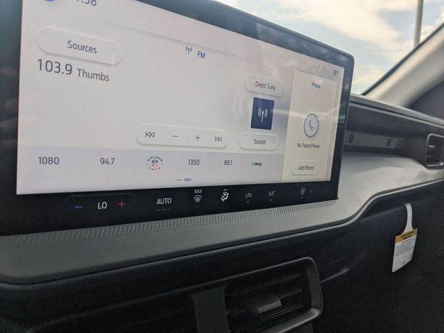 Ford Connectivity Package (1-Year Included), Internet access capable: 5G Modem - Ford Connectivity Package, 2.91 Axle Ratio, 4-Wheel Disc Brakes, 6 Speakers, ABS brakes, Air Conditioning, Alloy wheels, AM/FM radio: SiriusXM with 360L, Apple CarPlay/Android Auto, Auto High Beams, Auto High-beam Headlights, Automatic temperature control, Brake assist, Bumpers: body-color, Compass, Delay-off headlights, Driver door bin, Driver vanity mirror, Dual front impact airbags, Dual front side impact airbags, Electronic Stability Control, Emergency communication system: SYNC 4 911 Assist, Exterior Parking Camera Rear, Four wheel independent suspension, Front anti-roll bar, Front Bucket Seats, Front Center Armrest, Front reading lights, Fully automatic headlights, Illuminated entry, Intersection Assist, Knee airbag, Lane-Keeping System, Low tire pressure warning, Occupant sensing airbag, Outside temperature display, Overhead airbag, Overhead console, Panic alarm, Passenger door bin, Passenger vanity mirror, Power door mirrors, Power steering, Power windows, Pre-Collision Assist with Automatic Emergency Braking, Radio data system, Radio: AM/FM Stereo with 6 Speakers, Rear anti-roll bar, Rear seat center armrest, Rear step bumper, Rear-View Camera, Remote keyless entry, Security system, SiriusXM with 360L, Speed control, Speed-sensing steering, Steering wheel mounted audio controls, SYNC 4 with Enhanced Voice Recognition, Telescoping steering wheel, Tilt steering wheel, Traction control, Trip computer, Unique Cloth Front Bucket Seats, and Wheels: 17 Carbonized Gray Painted Aluminum.
