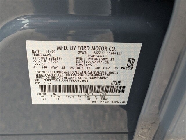 4K Tow Package (Trailer Brake Controller, Trailer Hitch (class III) 2 Receiver, and Upgraded Cooling Fan), Equipment Group 302A (Radio: AM/FM Stereo with 6 Speakers, SiriusXM with 360L, SYNC 4 with Enhanced Voice Recognition, Unique Cloth Front Bucket Seats, and Wheels: 17 Carbonized Gray Painted Aluminum), Ford Co-Pilot360 (Auto High Beams, BLIS with Cross-Traffic Alert and Trailer Coverage, Exit Warning, Intersection Assist, Lane-Keeping System, Power Glass Manual-Folding Mirrors, Pre-Collision Assist with Automatic Emergency Braking, Rear Cross Traffic Braking, Rear Parking Sensors, and Rear-View Camera), Ford Connectivity Package (1-Year Included), Internet access capable: 5G Modem - Ford Connectivity Package, XLT Luxury Package (Heated Mirror with Painted Black Skull Caps, Heated Seats, LED Box Lighting, Pro Power Onboard - 400W, Remote Start System, and Soft Vinyl Wrapped Heated Steering Wheel), 2.91 Axle Ratio, 4-Wheel Disc Brakes, 6 Speakers, ABS brakes, Air Conditioning, Alloy wheels, AM/FM radio: SiriusXM with 360L, Apple CarPlay/Android Auto, Auto High-beam Headlights, Automatic temperature control, Brake assist, Bumpers: body-color, Compass, Delay-off headlights, Driver door bin, Driver vanity mirror, Dual front impact airbags, Dual front side impact airbags, Electronic Stability Control, Emergency communication system: SYNC 4 911 Assist, Exterior Parking Camera Rear, Four wheel independent suspension, Front and Rear Floor Liners with Front Carpet Floor Mats, Front anti-roll bar, Front Bucket Seats, Front Center Armrest, Front reading lights, Fully automatic headlights, Illuminated entry, Knee airbag, Low tire pressure warning, Occupant sensing airbag, Outside temperature display, Overhead airbag, Overhead console, Panic alarm, Passenger door bin, Passenger vanity mirror, Power door mirrors, Power steering, Power windows, Radio data system, Rear anti-roll bar, Rear seat center armrest, Rear step bumper, Remote keyless entry, Security system, Speed control, Speed-sensing steering, Steering wheel mounted audio controls, Telescoping steering wheel, Tilt steering wheel, Traction control, and Trip computer.
