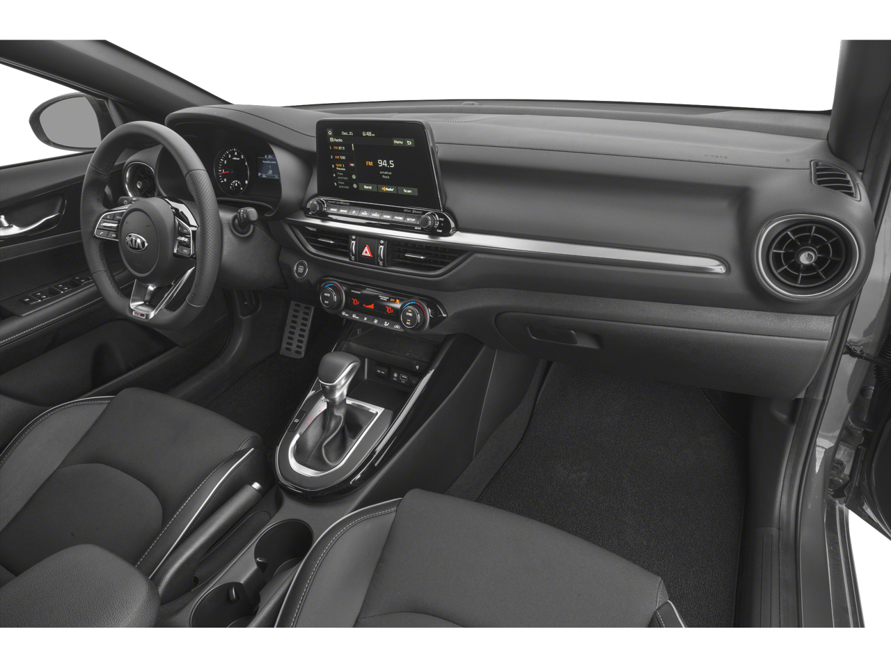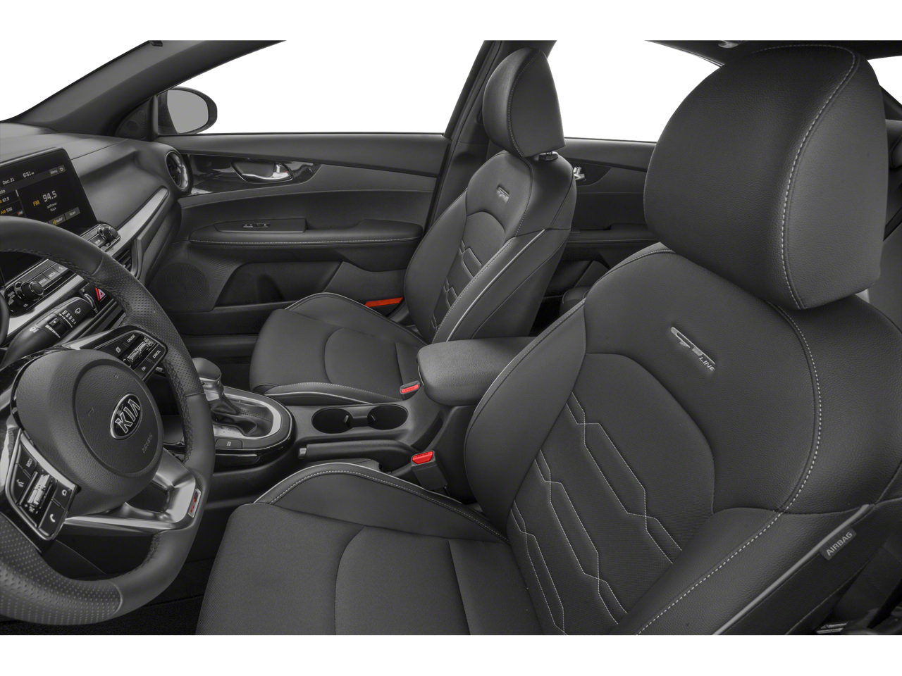 Step inside the Forte GT-Line and discover a cabin that seamlessly blends style and technology. The leather-wrapped steering wheel and shift knob, along with the cloth and leatherette seat trim, create a premium feel. Apple CarPlay and Android Auto integration keep you connected and entertained on the go.