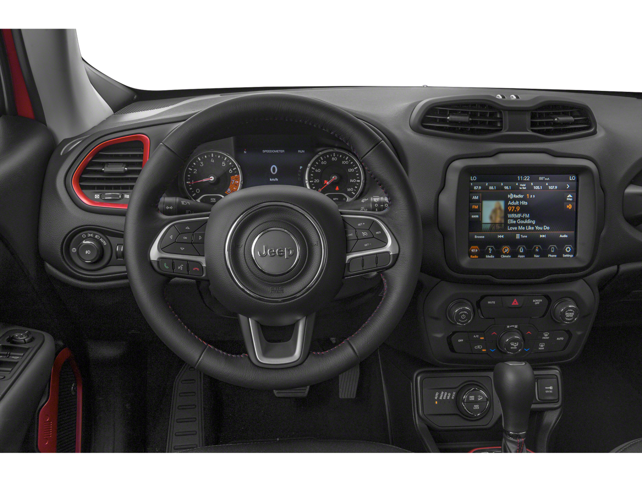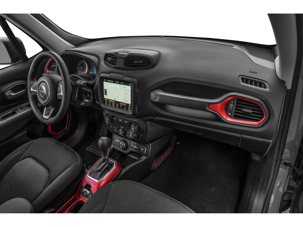 Safety is a top priority, and the Renegade Trailhawk delivers with a comprehensive suite of airbags, including dual front, side-impact, and overhead airbags, as well as an emergency communication system and a security system for your peace of mind.