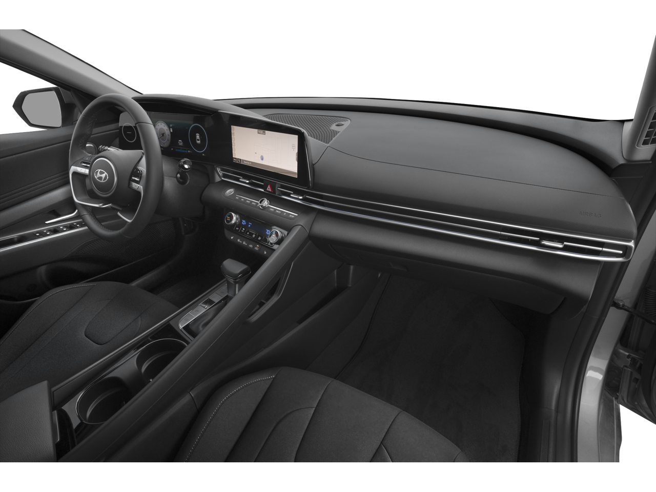 The interior of the Elantra is equally impressive, with Premium Cloth Seat Trim, Heated Front Bucket Seats, Front Center Armrest, and a Leather Shift Knob and Leather steering wheel, creating a luxurious and comfortable environment for you and your passengers.