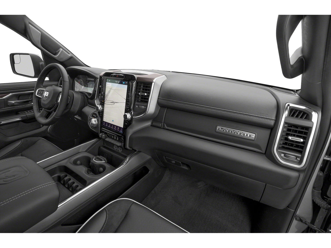 Step inside the spacious cabin and you'll be enveloped in the ultimate in luxury. The Laramie Level 1 Equipment Group provides a wealth of premium amenities, including a 12.0 Uconnect 5 Navigation display, 10-speaker audio system, heated and ventilated front seats, and a heated steering wheel. The leather-trimmed bucket seats with power adjustments and memory settings ensure a personalized, comfortable driving experience.